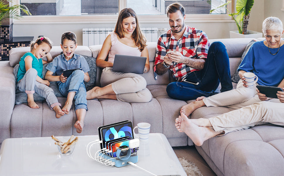 Observing the clutter and tangled wires that often accompany multi-device charging, we propose a solution: centralizing with short cables for a tidy space.